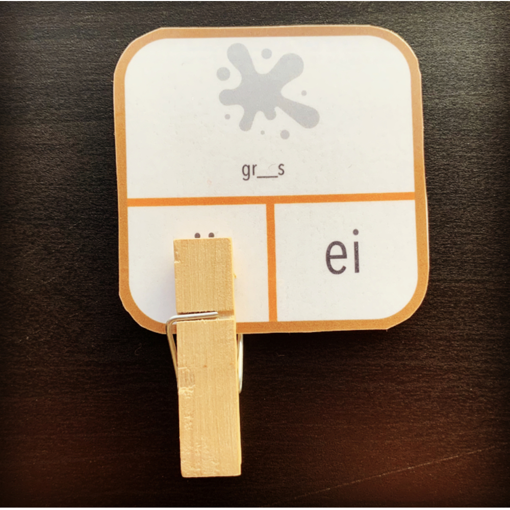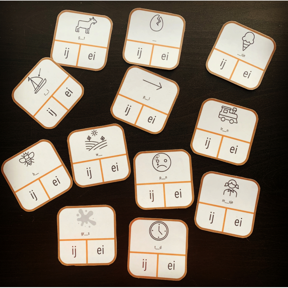 Knijpkaartjes waarin ze alleen of per twee kunnen inoefenen en herhalen. Ideaal aan deze oefening is dat ze zichzelf of de ander gemakkelijk kunnen verbeteren.