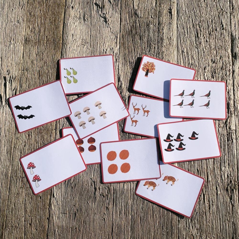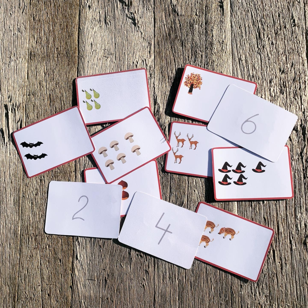 Dit ontvang je: 1 downloadbaar bestand met 20 kaartjes met getalbeelden tot 7, thema herfst.